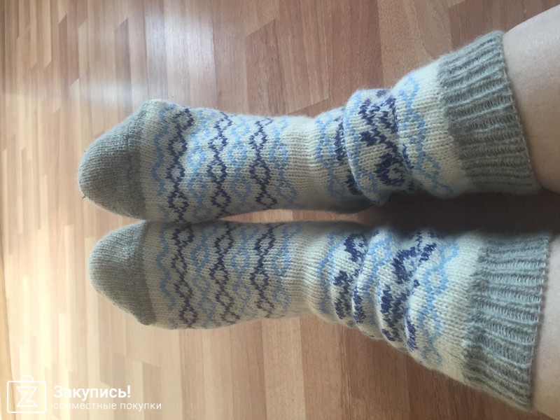 Ура! Наконец забрала свои носки, очень довольна! Мерила на голую ногу, колется еле-еле, можно носить даже без носка. Очень тёплые. Действительно, в носке немного широки, но мне кажется, что шерстяные носки и не должны жить в обтяг. На свой 38 брала 38-40, дома ходить как раз (свободно), если в обувь, то лучше брать на размер поменьше. Спасибо, Настя, за закупку!