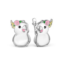 Серьги детские из серебра с эмалью и фианитами родированные - Попугаи