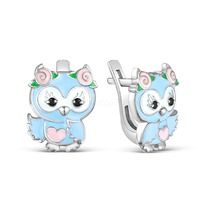 Серьги детские из серебра с эмалью и фианитами родированные 925 пробы сщ-00р216