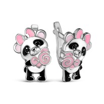 Серьги детские из серебра с эмалью, фианитами и позолотой родированные 925 пробы