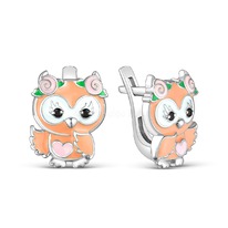Серьги детские из серебра с фианитами и позолотой родированные - Совушки 925 про
