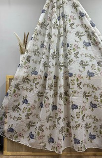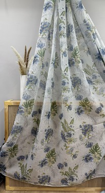 Батист листья синие цветы