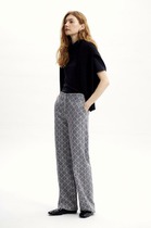 Брюки широкие из трикотажного поливискозного полотна джерси. По талии пояс на внутренней резинке. Спереди имитация гульфика. Боковые карманы с отрезным бочком. Боковые шлицы, по низу изделия потайной стежок.