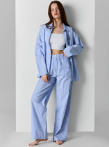Брюки прямого кроя со стрелкой и боковыми карманами из плотного гладкого трикотажа интерлок. Пояс на резинке обеспечивает комфортную посадку.