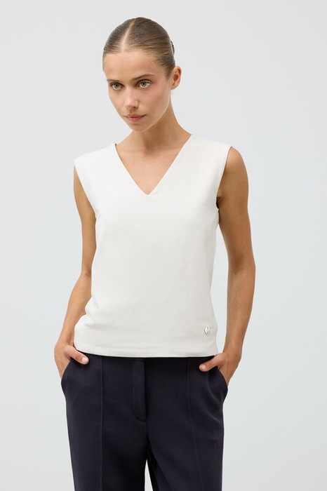 Классическим элементом гардероба является базовый топ с V-вырезом из хлопка. Широкие бретели делают изделие комфортным в носке и универсальным в повседневной жизни.