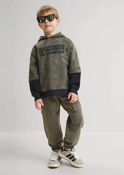 Удобные брюки из мягкого футера для мальчика с декоративными рельефами в области колен. Модель оснащена накладными карманами, эластичным поясом с регулировкой по талии для комфортной посадки.Сочетай брюки с футболками и толстовками из новой коллекции!