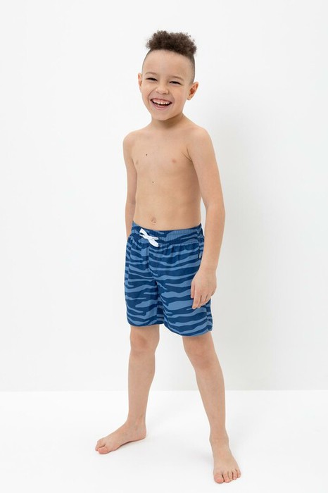 Плавательные шорты для мальчика с эластичной резинкой в поясе. Регулируются по ширине с помощью шнурка. Украшены набивкой и жаккардовой этикеткой с логотипом.