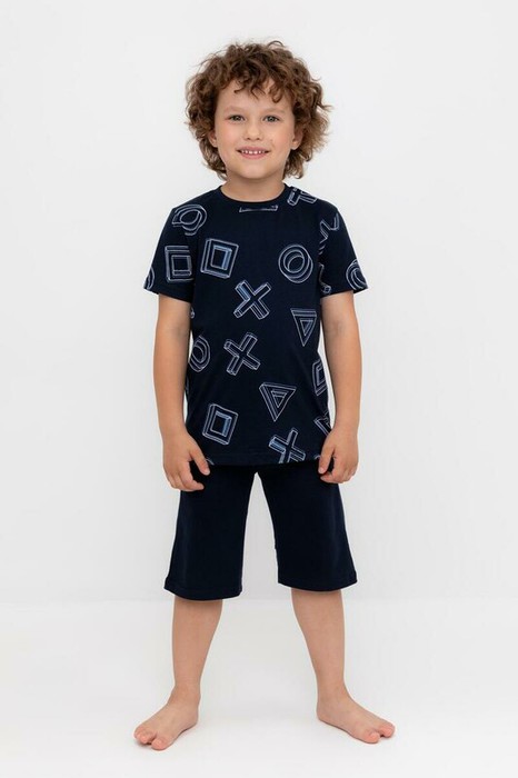 Трикотажная пижама из натурального хлопка. Футболка с короткими рукавами . У шорт эластичный пояс на резинке. Оригинальная набивка выполнена из стойких, гипоаллергенных текстильных красителей. Пижама сохраняет цвет и форму после многократных стирок. Все трикотажные полотна производятся в соответсвии с нормами Швейцарского сертификата ЭкоТекс.