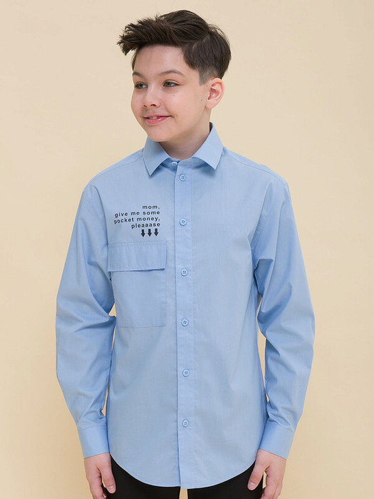 Рубашка для мальчика школьная — выражение его индивидуального стиля и уверенности. Сорочка детская свободного силуэта. По спинке расположена кокетка с двумя защипами, что обеспечивает полную свободу движения во время активных игр и занятий. Накладной карман с клапаном — это не только удобство, но и модный акцент, который добавляет шарма этой рубашке. А над карманом забавный принт, который придает рубашке индивидуальность и юмор. Ведь какой мальчик не захочет носить рубашку, которая говорит за него: "Мама, положи в мой карман деньги, пожа-а-алуйста"! В составе ткани преобладает высококачественный хлопок, делая эту рубашку мягкой и приятной на ощупь. Благодаря полиэстеру рубашка детская не потеряет форму и превосходный внешний вид даже после многих стирок, а кожа вашего ребенка будет дышать, и ему будет комфортно в течение всего дня. Для школьных рубашек мы используем сорочечную ткань, плотностью 100 гр/м2.  Эта школьная рубашка прекрасно сочетается с различными брюками, пиджаками и жилетами, что делает ее универсальной и практичной. Рубашка для мальчика не только стильная, но и функциональная, идеально дополнит образ вашего мальчика. Рекомендуемый уход за рубашкой также прост и эффективен: стирать при температуре не выше 30 °C, без предварительного замачивания, с изнанки, и аккуратно расправить перед сушкой.  При правильном уходе рубашка не потеряет внешнего вида. Не забудьте выбрать нужный размер по таблице размеров на фото. Обратите внимание, что цвет товара на экране вашего устройства может немного отличаться от цвета реального изделия.