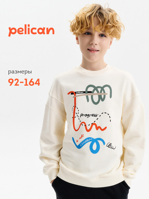 08.04 Pelican Толстовка для мальчиков BFN3388/1U Молочный