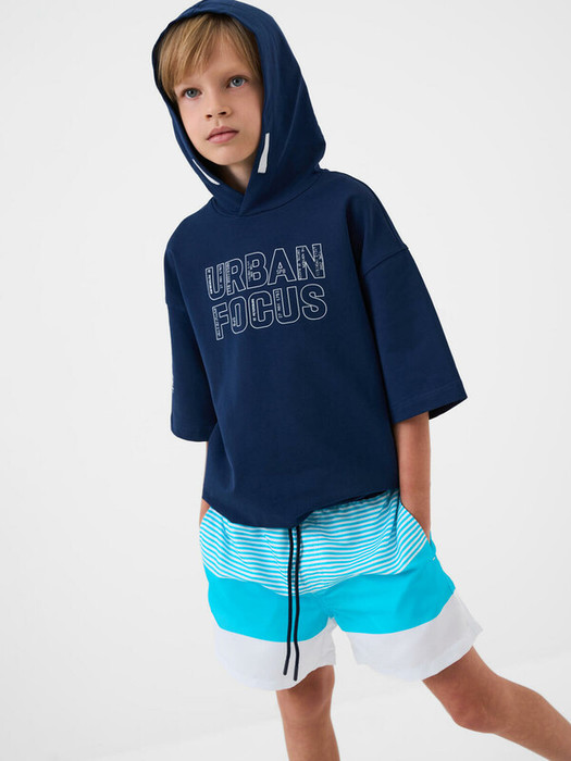 Плавательные шорты из быстросохнущего материала с водоотталкивающей пропиткой для мальчика подростка. Бордшорты (swimshort) средней длины. Модель с подкладкой из мягкой сетки в виде трусов, карманы из сетки. Пояс на резинке с дополнительной регулировкой по талии шнурком. Благодаря UF-защите, ткань сохраняет первоначальный вид даже при длительном пребывании на солнце. Отличный вариант для пляжа и бассейна.
