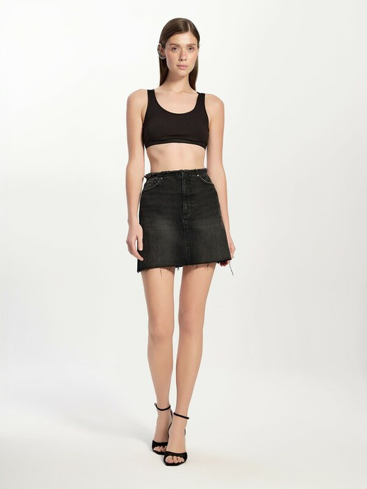 Чёрная джинсовая юбка-mini с эффектом разрушений и бахромой станет акцентом в вашем образе и отлично подчеркнёт силуэт. Модель эффектно смотрится в сочетании с укороченными топами, футболками и рубашками.