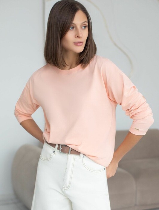 Совместные покупки Нижневартовск Женская одежда Джемперы, свитеры, водолазки — 09.04 Vilatte Базовый лонгслив из премиального хлопка с эластаном D49.147 пудро