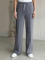 Брюки прямого кроя выполнены из эластичного футера двухнитки. Модель свободного силуэта с отстроченными стрелками визуально удлиняющих ноги. В боковых швах расположены карманы. Внутренняя часть кармана из тонкого хлопка в тон полотна. Модель дополнена эластичным поясом, с контрастной полосой и золотистым логотипом бренда. Сочетается в костюме с джемпером D49.083 и D49.086. Правила ухода: использовать жидкое моющее средство (гель для стирки), добавлять к нему кислородный пятновыводитель для цветных вещей, и салфетки (защита от окрашивания). Стирка при 30 градусах, отжим на максимальных оборотах.