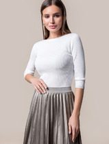 Джемпер с круглым вырезом выполнен из фактурного трикотажа в широкий рубчик. Модель идеально сидит по фигуре не сковывая движения. Хлопковый трикотаж поддерживает оптимальную температуру тела, поэтому в изделии будет комфортно в течении всего дня. Наличие эластана в составе гарантирует формоустойчивости. Базовая модель впишется в любой гардероб.