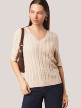09.04 Vilatte Джемпер фактурной вязки из хлопка с кашемиром D39.349 бежевый мел