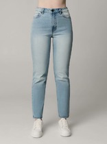 Джинсы трубы светло-голубого цвета выполнены из эластичного денима плотностью 13,7 OZ - классическая структура, которая отлично держит форму.и подчеркивает фигуру. После пошива изделие подвергли специальному виду вошинга — salt-stone washing (солт-стоун вошинг), что дословно значит стирка с каменной солью. Такой вид вошинга позволяет получить стильные потертости на голубых оттенках денима. Джинсы прямого кроя визуально вытягивают силуэт, благодаря эластану в составе аккуратно садятся на любую фигуру и обеспечивают максимальный комфорт в течение дня, не сковывая движения. Широкая размерная линейка подходит для разных типов фигур: свободные джинсы комфортны как для обладательниц пышных форм, так и для худеньких. Плотные джинсы идеально держат форму даже при активном движении и не вытягиваются после долгой носки. Качественная фурнитура и нашивка из эко-кожи с логотипом бренда делают эти джинсы премиальными. Широкий крой добавляет актуальности — такие джинсы отлично сочетаются как с обувью на каблуке, так и на пл