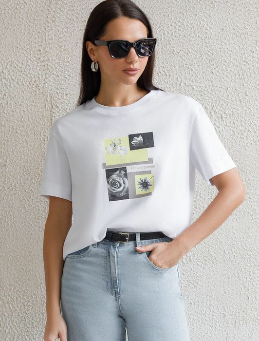 Совместные покупки Нижневартовск Женская одежда Футболки — 09.04 Vilatte Футболка D49.145 белый_flower_power