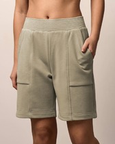 Шорты выполнены из эластичного футера. В области боковых швов низ шорт оформлен фигурной скругленной линией. В боковых швах расположены карманы. Внутренняя часть кармана из тонкого хлопка в тон полотна. Модель дополнена эластичным поясом, с контрастной полосой и золотистым логотипом бренда. Сочетается в костюме с джемпером D49.083 и D49.086. Правила ухода: использовать жидкое моющее средство (гель для стирки), добавлять к нему кислородный пятновыводитель для цветных вещей, и салфетки (защита от окрашивания). Стирка при 30 градусах, отжим на максимальных оборотах.