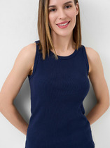 Топ выполнен из трикотажа в широкий рубчик. Эластичный хлопковый трикотаж сидит по фигуре, не сковывает движений и очень комфортный в носке. Фактура вертикальных полос визуально стройнит и вытягивает силуэт. Базовое изделие хорошо впишется в любой гардероб. Идеально подходит для многослойных образов.