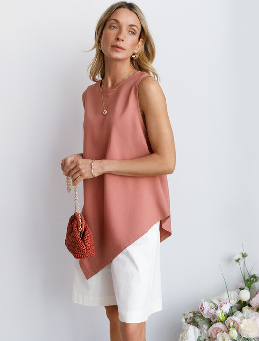 21.04 Vilatte Удлиненный топ из плотного лиоцелла D23.063 дымчато-коралловый