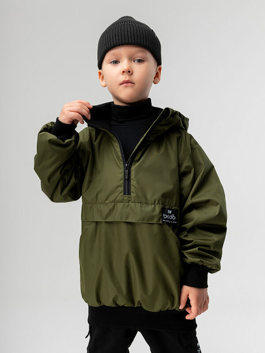 Стильная ветровка анорак для детей. Материал верха: Дюспо, материал подклада хлопок 100 %, материал подклада на рукавах таффета. Материал Дюспо: водоотталкивающий, воздухообменный и ветрозащитный. Детали: сквозные боковые карманы, несъемный капюшон на стойке закрывает шею.Температурный режим от +8 до +15.