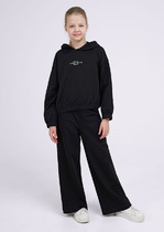 Трикотажные брюки для девочки из футера с начесом. В составе 80% натурального хлопка и 20% полиэстера, при этом полиэстер ввязан внутрь по особой технологии и не соприкасается с кожей. Эластичный пояс на резинке регулируется по ширине с помощью шнурка, по бокам два удобных кармана, внизу эластичные манжеты.