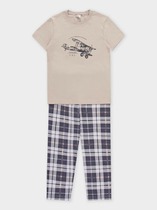 Трикотажная пижама в рубчик из натурального хлопка. Футболка с короткими втачными рукавами и шорты с эластичной резинкой в поясе. Оригинальная набивка выполнена из стойких текстильных гипоаллергенных красителей. Изделие сохраняет цвет и форму после многократных стирок. Все трикотажные полотна производятся в соответствии с нормами швейцарского сертификата ЭкоТекс.