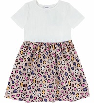 Платье для девочки из петельчатого футера на кнопках. Оригинальная набивка выполнена из стойких текстильных гипоаллергенных красителей.