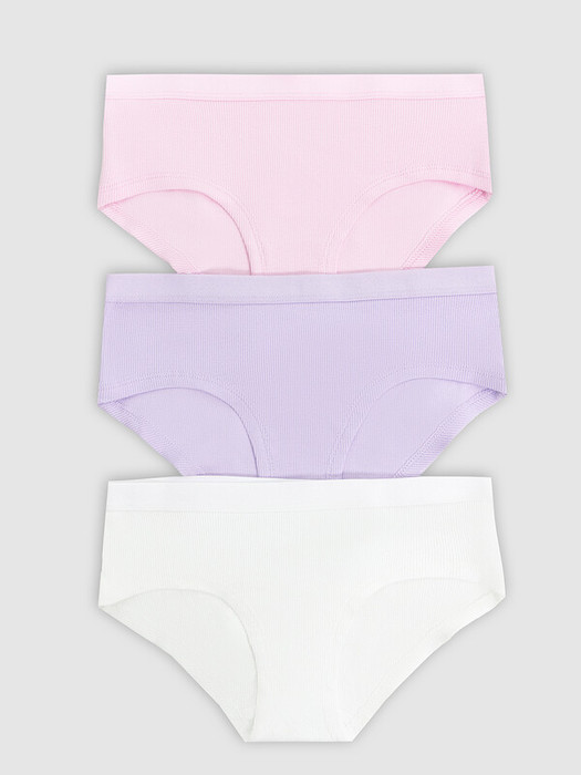 Мультипак (3 шт.) стильных трусиков-шортов из трикотажной рибаны – в мелкий рубчик. Нижние срезы подогнуты, на верхнем срезе – жаккардовая тесьма. Актуальный выбор!