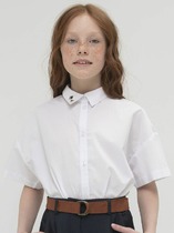 Школьная блузка для девочки свободного кроя. Блузка детская с классическим отложным воротничком. Удобная центральная застёжка на кнопки, имитирующие пуговицы — ребёнок легко и быстро застегнёт и расстегнёт. Фишка модели — глубокие складки, заложенные в верхней части переда. — стильная деталь, выгодно отличающая эту модель от банальных однотонных блузок. В составе ткани преобладает качественный хлопок — блузка в школу для девочки мягкая, воздухопроницаемая и комфортная для ребёнка. Полиэстер помогает не терять форму и отличный внешний вид — изделие прослужит не один сезон. Школьная блузка лаконичного дизайна, без принта, её легко сочетать с различными брюками, юбками, сарафанами. Красивая и практичная блузка белая для девочки — подходит как для повседневной носки, так и для более торжественных случаев. Помните о правильном уходе за изделием: рекомендуется стирать при температуре не выше 30 °C, без предварительного замачивания, с изнанки. Это поможет сохранить качество и цвет блузки на долгое время.