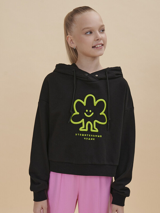 Стильное укороченное худи для девочек. Худи из футера трендового оверсайз-силуэта со спущенным плечом подарит ребёнку комфорт и не будет стеснять его движений. Худи с капюшоном с двумя швами, что обеспечивает анатомически правильную форму и комфортную посадку по голове. Худи однотонное, с принтом, по низу изделия и рукавов манжета из рибаны. За толстовкой легко ухаживать. В составе ткани преобладает высококачественный хлопок — худи мягкое и отлично пропускает воздух, позволяя коже ребёнка дышать. Благодаря эластану изделие сохраняет великолепную форму в течение долгого времени. Джемпер выполнен в двух актуальных цветах: зеленом и черном. Его легко сочетать с любыми брюками, легинсами, джинсами. В линейке представлены следующие размеры: 1 (86); 2 (92); 3 (98); 4 (104); 5 (110); 6 (116); 7 (122); 8 (128); 9 (134); 10 (140); 11 (146). Худи детское подходит девочкам дошкольного возраста, младшим школьницам и девочкам-подросткам. Модель идеальна для детского сада, прогулок, отдыха, её можно носить дома. Худи без начёса оверсайз подходит для круглогодичного применения: летом, осенью, зимой, весной и демисезон. Это замечательный подарок дочери, внучке или сестре на День рождения и любой другой праздник. Выбирайте нужный размер по таблице размеров на фото. Цвет товара на экране вашего устройства может отличаться от цвета изделия вживую.