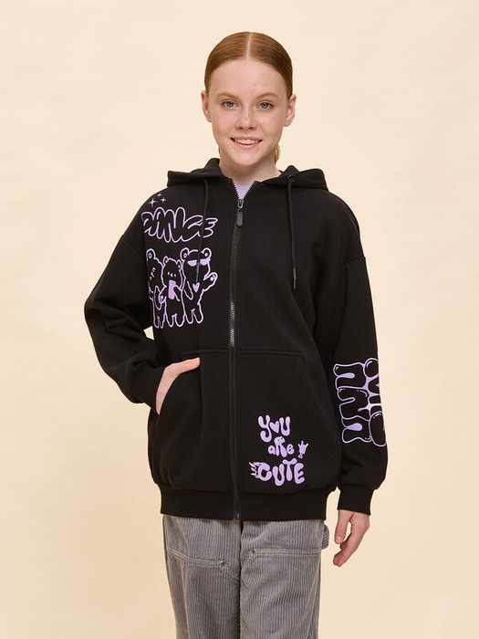 Трикотажная куртка из смесового футерованного полотна с начесом. Свободного силуэта, с мягким, очень спущенным плечом и застежкой "на молнию". По низу изделия и низу рукава манжета из рибаны. На переде накладные карманы. Капюшон с регулировкой шнуром
