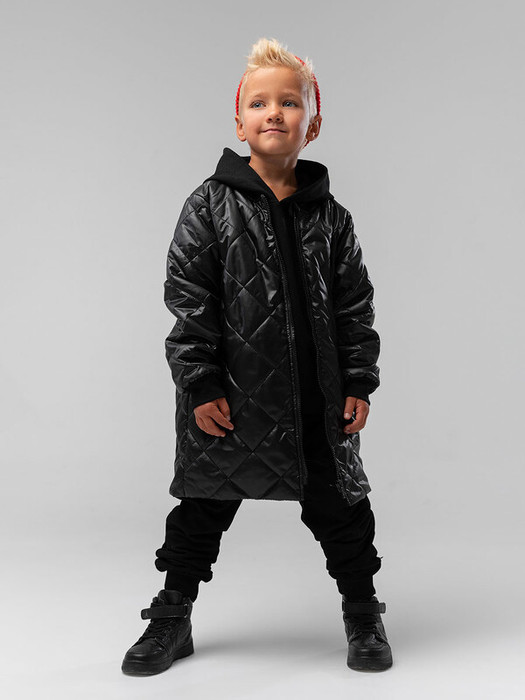 Стеганый удлиненный бомбер для детей. Детали: рукава на манжетах, карманы в боковых швах, застежка - молния. Внутри изделия легкий гипоаллергенный современный утеплитель Hetta micro, надежная защита от холода при минимальном объеме, сохраняет упругость и форму после многократных стирок. Материал верха: Fitsystem 100% полиэстер, утеплитель Hetta micro 100 г/кв.м, подкладочный материал кулирная гладь 100% хлопок