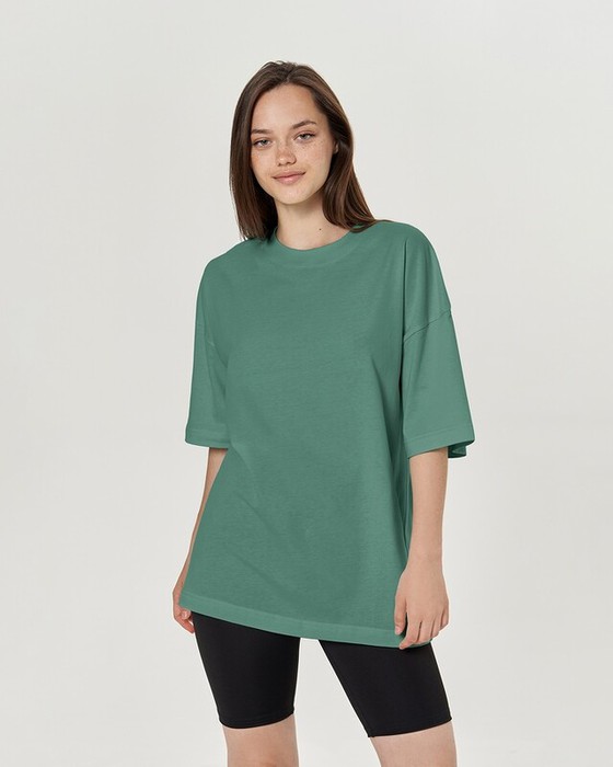 Футболка свободного силуэта. Спущенное плечо. Горловина из двух деталей, из рибаны. Декор: шелкотрафаретная печать.