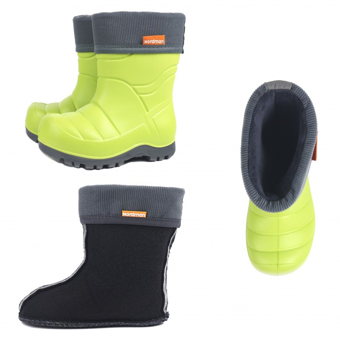 Детские сапоги из ЭВА Nordman Flash не пропускают влагу, очень легкие и теплые. Флисовый утеплитель легко вынимается. Его можно сушить и стирать.