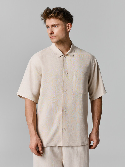 Стильная мужская рубашка с короткими рукавами сочетает в себе легкость льна и мягкость хлопка, что делает ее идеальной для жаркого лета. Спереди расположены застежка на петли и пуговицы, а воротник-стойка и горизонтальная двойная кокетка на спинке придают модели элегантный и современный вид. Эту рубашку можно носить как самостоятельный предмет гардероба или поверх футболок и маек, создавая разнообразные образы. Широкий размерный ряд позволяет подобрать идеальный вариант для любого мужчины. Рекомендуем для лаконичных городских образов, обеспечивая комфорт и стиль в любое время дня.