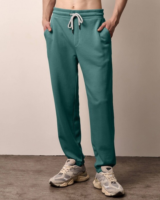 Мужские брюки, джоггеры с резинкой по низу брюк. Пояс из 2-х деталей, внутри резинка. По поясу отстрочка, петли,шнур. Боковые карманы с двойной отстрочкой, боковые швы отстрочены. Задний карман на правой задней половинке брюк.