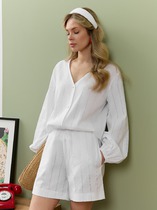 Укороченные шорты, низкая посадка. Притачной отстроченный пояс со шнурком. Боковые карманы. На правой задней половинке шорт накладной карман. Декор вышивка на левой детали переда
