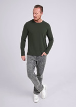 Мужской джемпер с круглым вырезом горловины со спущенным рукавом на манжете и поясе. Изделие выполнено из плотного футера. Модель дополнена дизайнерской аппликацией. Отличный вариант для повседневного образа со спортивным низом или джинсами.