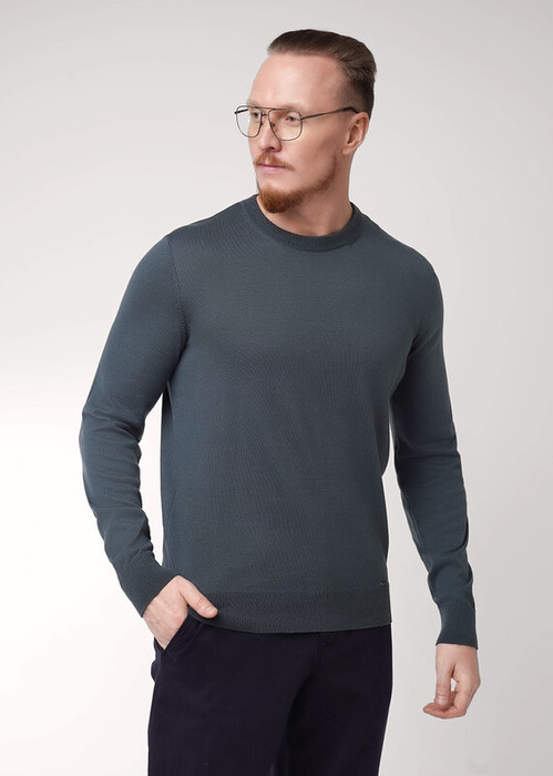 Классический вязаный джемпер с круглой горловиной. Изделие изготовлено из смесовой пряжи с содержанием хлопка. Данный джемпер удачно впишется в повседневный гардероб современного мужчины, привнося тепло, комфорт и элегантность одновременно.