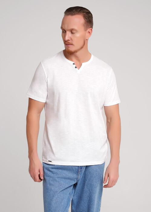 Футболка мужская с округлой горловиной и планкой из фактурного полотна флам. Данная модель прекрасно комбинируется с джинсами или шортами. Модель дополнена имиджевой фурнитурой. Отличное решение на лето для прогулок с друзьями или поездки на отдых.