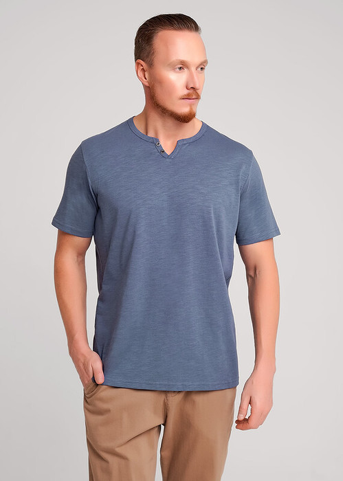 Футболка мужская с округлой горловиной и планкой из фактурного полотна флам. Данная модель прекрасно комбинируется с джинсами или шортами. Модель дополнена имиджевой фурнитурой. Отличное решение на лето для прогулок с друзьями или поездки на отдых.