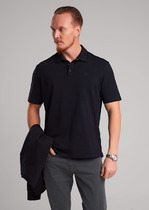 Футболка поло с манжетами и воротником, из фактурного полотна, с содержанием хлопка и полиэстера. Функциональная планка на 3 кнопки. Отличное решение для похода на работу и создания образа в стиле casual.