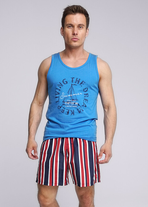 Мужские купальные шорты с широким поясом на резинке и регулируемым шнуром. Шорты с рисунком удобны в носке и не стесняют движений, для функциональности боковые карманы. В них комфортно ходить по пляжу и городу, отлично смотрятся на любом типе фигуры.