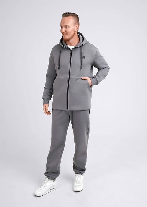 Тёплая мужская трикотажная куртка на молнии с капюшоном и вместительными карманами. Произведена из мягкого трикотажного футер с начёсом, дополнена дизайнерским принтом. Удобный и практичный вариант на каждый день.