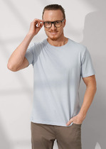 Фуфайка мужская из однотонного трикотажного полотна с коротким рукавом. Горловина круглая обработана обтачкой. Низ рукава обработан манжетами. Обтачка и манжеты изделия из контрастного отделочного полотна.