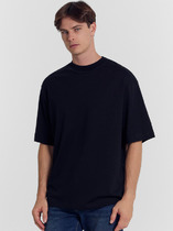 Фуфайка с коротким рукавом среднего объема, с оригинальным принтом, круглым вырезом горловины, которая оформлена обтачкой из рибаны.
