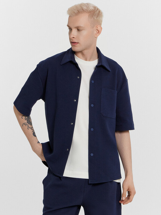 Эта мужская рубашка с коротким рукавом — стильный и универсальный вариант для повседневных и летних образов. Свободный силуэт обеспечивает комфортную посадку, а спущенная линия плеча добавляет расслабленный и современный акцент. Круглый вырез горловины с классическим воротником придает модели элегантность, а центральная застежка на кнопки делает ее удобной в носке. Накладной карман спереди добавляет функциональность и стильный штрих. Короткие рукава и обработанные швы придают аккуратный вид, а трикотажный материал интерлок обеспечивает мягкость, прочность и приятные ощущения на коже. Эта рубашка легко сочетается с джинсами, брюками или шортами, позволяя создавать актуальные и комфортные образы!