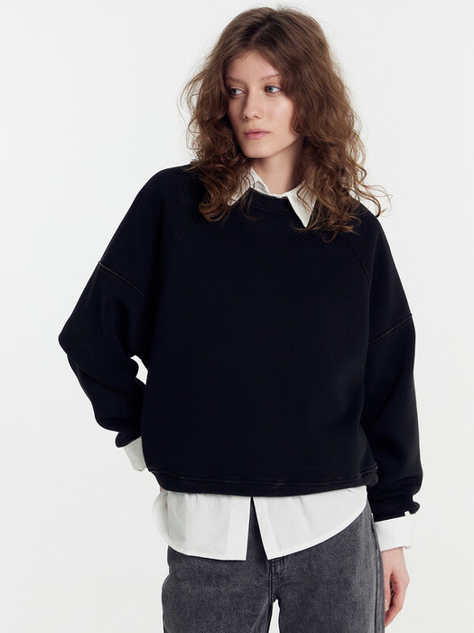 Объемный женский свитшот свободного силуэта из футера с теплым и нежным подчесом. Вырез классический, круглый. Рукава типа "реглан" со значительно спущенной линией плеча дарят особый комфорт. По низу свитшота – свободный широкий пояс из рибаны. Это тренд!